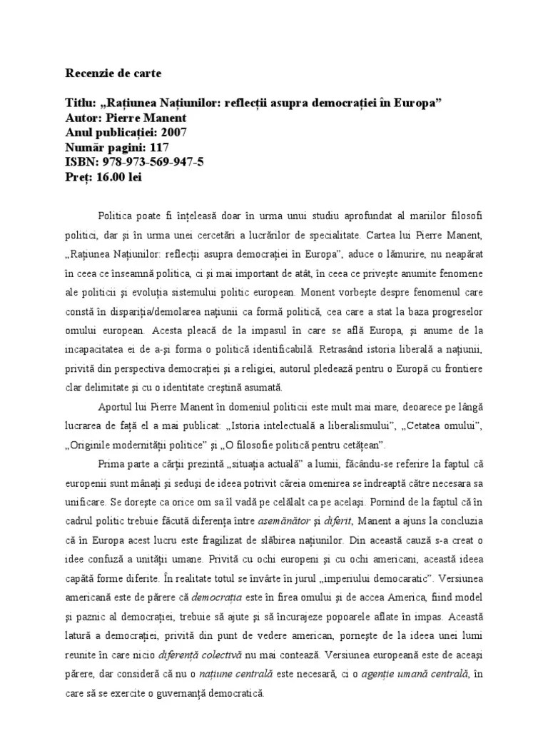 Sociologul francez a încercat, şi pot să afirm că a reuşit, să impună. Sunt niște opinii subiective ale unei cărți, în care se prezintă câteva idei despre personaje și … 100% (3) 100% au considerat acest document util (3 voturi) 992 vizualizări 4 pagini.. Apăsați pentru a extinde informațiile documentului.