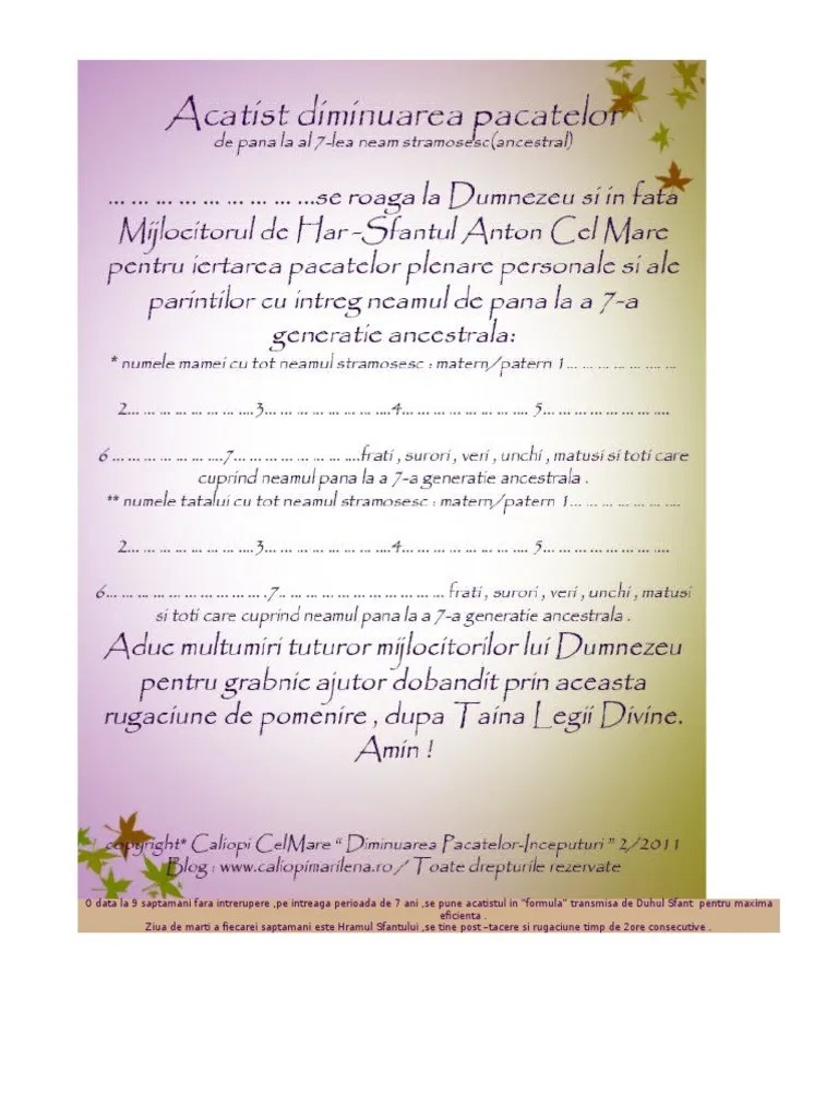 O, sfinte antoane, neînvins apărător al adevărurilor creștine, vistiernic și împărțitor de haruri și minuni, cu umilință și încredere vin să implor ocrotirea ta în favoarea propriei mele familii.. Rugaciune catre sfântul anton de padova pentru propria familie. Pe 17 ianuarie, în fiecare an este prăznuit sfântul antonie, considerat sfântul care îi … O, sfinte antoane, neînvins apărător al adevărurilor creștine, vistiernic și împărțitor de haruri și minuni, cu umilință și încredere vin să implor ocrotirea ta în favoarea propriei mele familii. Rugăciune către sfântul antonie cel mare: 29/07/2002 · rugăciune pentru reuşita la examen.. Anton, rugaciunea de dimineata catre sf.